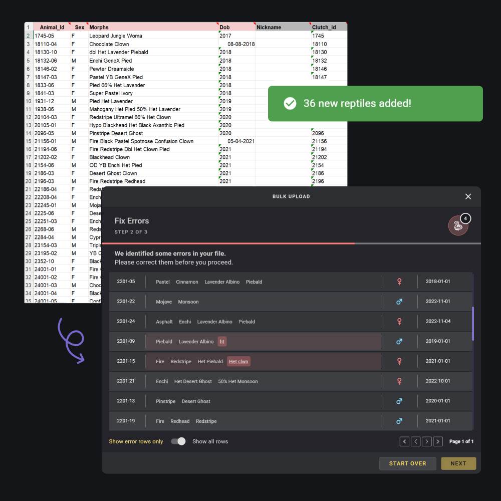 Upload your spreadsheet and we’ll help clean up any errors on the spot.