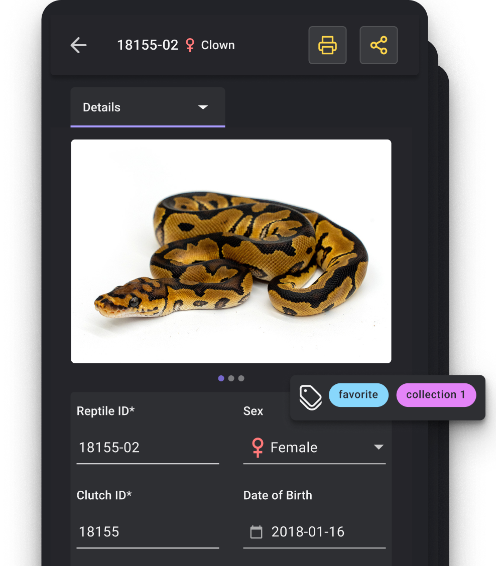 Cltch scales with your collection and lets you manage unlimited animal records that are simple to browse and share.
